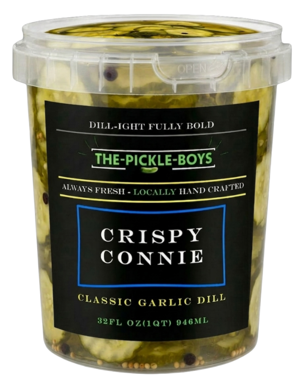Crispy Connie: Made with herby fresh dill, pickling spices, and plenty of garlic cloves, a batch of Crispy Connie Pickles are the tangy, crunchy snacking pickles you’ve been waiting for!