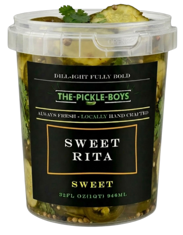 Sweet Rita Special: This sweet pickle takes on a classic bread and butter style taste . Fresh ingredients, quality spices and a touch of agave to top off additional sweetness.